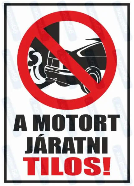 A motort járatni tilos " felirat, és tiltó piktogram, öntapadós vinyl matrica, vagy PVC tábla. -UV és időjárás álló-Több méretben választhatóA tiltó fehér alapon áthúzott piros kör és fekete piktogram jelzések a biztonságot és az egészséget veszélyeztető magatartást tiltanak, valamint figyelmeztetnek a veszélyforrásra.