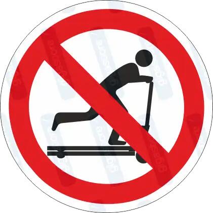 Anyagmozgatón, kézi targoncán közlekedést, nem rendeltetésszerű használatot tiltó piktogram, öntapadós vinyl matrica. -UV és időjárás álló-Több méretben választhatóA tiltó fehér alapon áthúzott piros kör és fekete piktogram jelzések a biztonságot és az egészséget veszélyeztető magatartást tiltanak, valamint figyelmeztetnek a veszélyforrásra.