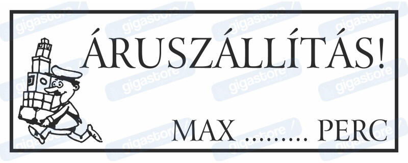Áruszállítás max. . . . . . perc tábla matrica : Tábla-matrica mérete - 350 x 500 mm, Tábla-matrica típusa - 3mm pvc tábla