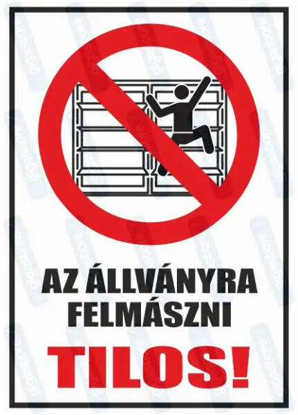 Az állványra felmászni tilos piktogram+felirat tábla matrica : Tábla-matrica mérete - A4 / 210 x 297 mm, Tábla-matrica típusa - matrica
