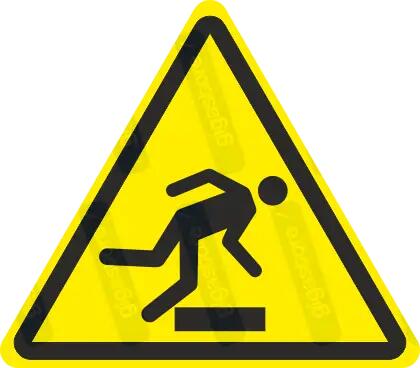 Botlás - bukkanó veszélye piktogram matrica ISO 7010 W007 : Tábla-matrica mérete - 150 x 131 mm, Tábla-matrica típusa - matrica