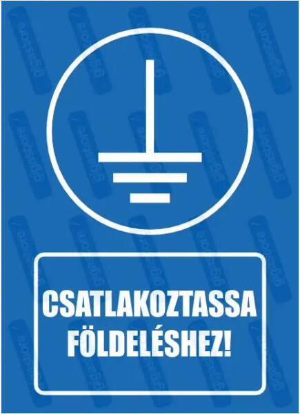 Csatlakoztassa földeléshez piktogram+felirat tábla matrica : Tábla-matrica mérete - 160 x 250 mm, Tábla-matrica típusa - matrica