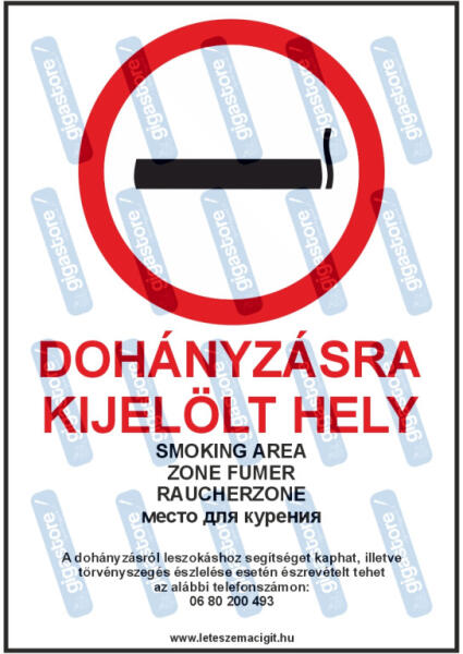 Dohányzásra kijelölt hely tábla matrica : Tábla-matrica mérete - A5 / 148 x 210 mm, Tábla-matrica típusa - matrica
