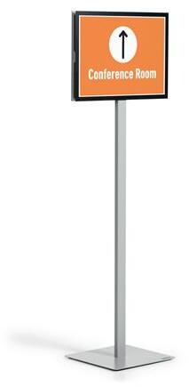 Az INFO STAND BASIC padlóállvány mindkét oldalról olvasható, így mind információk bemutatására, mind tájékozódási és útmutató rendszerként is használható.