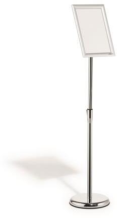 Gyorsan összeszerelhető információs állvány stabil DIN A4-es alumínium kerettel. -acél, alumínium, műanyag -ezüst színű -nagyobb stabilitás a talp homokkal való feltöltésével érhető el (átmérő: 250 mm) -gumigyűrűvel ellátott kerek talp, mely megakadályozza a padló karcolódását -fokozatosan állítható teleszkópos rúd, 770 mm-től 1205 mm magasságig állítható -a keret könnyen átfordítható álló vagy fekvő formátumba. -állítható olvasási szög, a gömbcsuklónak köszönhetően. -tükröződésmentes, UV-álló fólia -törésálló, polisztirol hátlap -ideális a vendéglátásban, kiskereskedelemben, múzeumokban, kiállításokon, vásárcsarnokokban, recepción, várótermekben és konferenciatermekben stb. -magasság: 1205 mm Itt megtekinthető és letölthető a termékadatlap. Itt megtekinthető és letölthető a környezetvédelmi adatlap. Gyártó/első EU forgalmazó elérhetősége: DURABLE Hunke & Jochheim GmbH & Co. KG Westfalenstrasse 77-79, D- 58636 Iserlohn, Germany info@durable. de www. durable. de