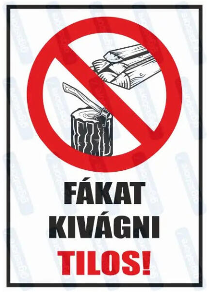 Fákat kivágni tilos piktogram+felirat tábla matrica : Tábla-matrica mérete - A3 / 297 x 420 mm, Tábla-matrica típusa - matrica