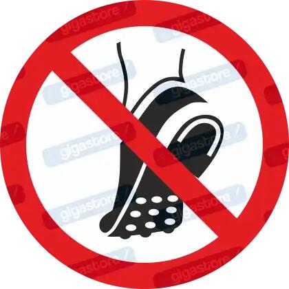 P035 " Fémszegecses cipővel belépést, vagy annak viselését tiltó piktogram, öntapadós vinyl matrica. ISO 7010-es szabvány szerint, egyszerű, gyors és nyelvfüggetlen módon közöl információt, hogy bárki könnyen megértse. -UV és időjárás álló-Több méretben választhatóA tiltó fehér alapon áthúzott piros kör és fekete piktogram jelzések a biztonságot és az egészséget veszélyeztető magatartást tiltanak, valamint figyelmeztetnek a veszélyforrásra.