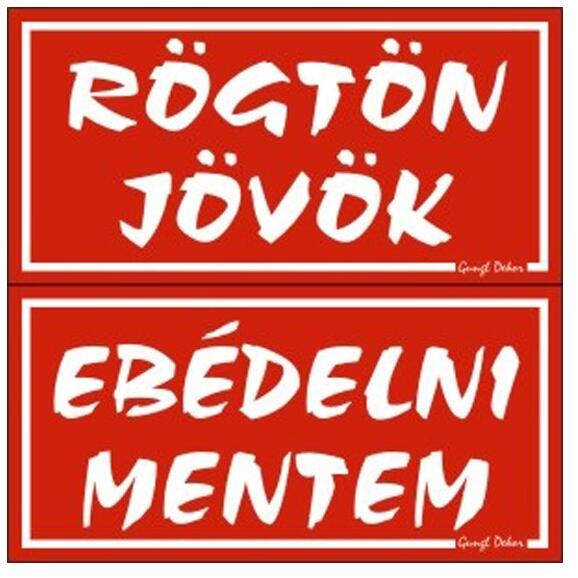 Gungl Dekor Piktogram Rögtön jövök-ebédelni mentem (kétold. tábla) piros (018/ P)