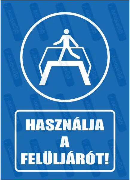 Használja a felüljárót " felirat, ember és felüljáró piktogram, öntapadós vinyl matrica, vagy PVC tábla. -UV és időjárás álló-Több méretben választhatóA rendelkező kék alapon fehér jelzések meghatározott magatartást írnak elő, célja az élet és vagyon védelme.