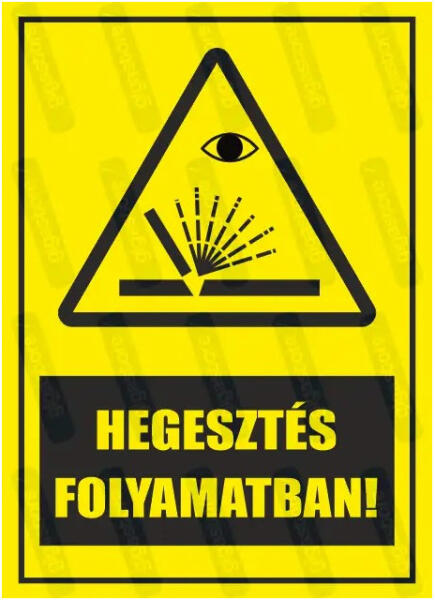 Hegesztés folyamatban piktogram+felirat tábla matrica : Tábla-matrica mérete - A5 / 148 x 210 mm, Tábla-matrica típusa - 3mm pvc tábla