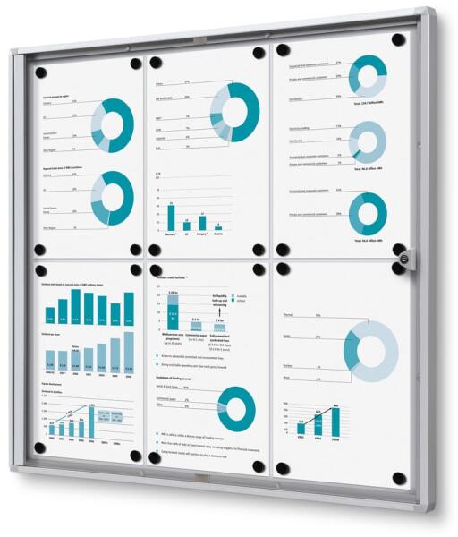 Belső információs kirakat Economy 6 x A4 - fém hátlap, tűzállóFőbb jellemzőkFormátum: 6 x A4Felület: mágneses, írhatóAnyag: alumínium keret és plexiüveg ajtóZár: hengeres zár a biztonságos használathozAjtótípus: szárnyas ajtóMéretek: 71,1 cm hosszú, 65,5 cm magas, 2,6 cm mélyGarancia: 5 évRendeltetés: beltéri használatraA Belső információs kirakat Economy 6 x A4 ideális választás, ha jól átlátható, rendezett és biztonságos megjelenítésre van szükség belső terekben. Az alumínium keret könnyű, ugyanakkor tartós, míg a plexiüveg ajtó védi a tartalmat a sérülésektől. A szárnyas ajtó lehetővé teszi a könnyű hozzáférést a dokumentumokhoz, miközben a hengeres zár megakadályozza az illetéktelen hozzáférést. Erőssége a mágneses és írható hátlap, ami rugalmassá teszi a tartalom frissítését és átrendezését, legyen szó akár tájékoztató anyagokról, vagy fontos közleményekről. Emellett a tűzálló kivitel extra biztonságot nyújt belső használat során. Praktikus és megbízható megoldásEz a modern információs kirakat nemcsak praktikus, de esztétikailag is kellemes megjelenést biztosít, amely bármely irodai vagy intézményi környezetbe jól illeszkedik. A hosszú, 5 év garancia a termék megbízhatóságáról és minőségéről tanúskodik. Válassza Ön is ezt a gazdaságos, mégis tartós információs felületet, hogy még hatékonyabban kommunikálhassa üzeneteit!