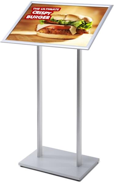 Az A2-es méretű étlappal ellátott étlap ideális nyomtatványok bemutatására beltéren és fedett kültéri környezetben is, nem csak éttermekben vagy irodákban. Ennek a modern állványnak a felépítése kiváló minőségű fémből készült, és a meghosszabbított talpnak köszönhetően, amely gumi lábakkal is van ellátva, az állvány nagyon stabil. A deszka egyszerűsége a keret egy vagy több oldalának kényelmes összehajtásában és a tartalom későbbi beszerelésében áll, amit bárki elvégezhet. A menütábla nagy előnye a bemutató felület állítható tájolása, mert ez az eloxált alumíniumból készült, 25 mm-es profilú keret kényelmesen rögzíthető vízszintesen és függőlegesen is, és az elegáns éles sarkoknak köszönhetően jól is fog kinézni. Az A2-es, 25 mm-es profilú deszkával ellátott menütábla fő előnyei A burkolólappal ellátott menütábla remek választás prezentációhoz Belső és fedett kültéri használatra alkalmas Kényelmes tartalomcsere a keret csuklós oldalainak köszönhetően A keret eloxált alumíniumból készült Lehetőség a kereplő függőleges vagy vízszintes felakasztásáhozdiv class="vyskaMiddle"> Elegáns felépítés A csappantyú egy fémrúddal csatlakozik az alaphoz, amely a végén hajlított, és így kényelmesen megdönti a megjelenített tartalmat a megfigyelő szemére merőlegesen. Kiváló stabilitás A meghosszabbított talp alsó oldalán gumilábak vannak felszerelve, amelyek biztonságosan megakadályozzák a csúszást és így még nagyobb stabilitást biztosítanak .