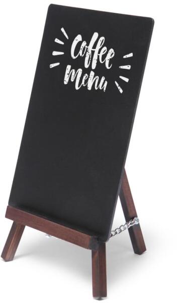 A 12 x 20,4 cm-es fa mini menüállvány nagyszerű és elegáns megoldás sokféle információ bemutatására, különösen éttermi környezetben. Ez a hangszer, amely a retro és a modern kombinációját ötvözi, minden bizonnyal ízletessé teszi a belső teret, és különösen ideális asztalra vagy bárpultra való elhelyezésre. A fából készült miniállvány nagy előnye a kényelmes, kréta jelölőkkel történő jelölés és az ezt követő egyszerű tisztítás, amikor csak egy nedves szivacs elegendő. Az állványt úgy tervezték, hogy jól látható helyen kerüljön elhelyezésre, ahol a feldolgozásnak köszönhetően könnyen a figyelem középpontjába kerül. Három színben szállítjuk: sötétbarna, világosbarna és fekete. A fából készült miniállvány fő előnyei 12 x 20,4 cm A fából készült állvány tökéletesen kiegészíti a belső teret. A retro és a modern elegáns kombinációja A leírás kréta jelölőkkel készült. A feldolgozásnak köszönhetően , ez lesz a középpont