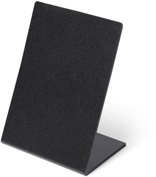 Fekete árcédula L állvány A6Főbb jellemzőkAnyag: HPLMéret: 14,6 cm magas, 10,5 cm széles, 6 cm hosszúMegfelelő formátum: A6Garancia: 5 évA Fekete árcédula L állvány A6 praktikus és tartós megoldás árcédulák és kisebb tájékoztatók bemutatására üzletekben vagy kiállítóterekben. Masszív HPL anyagának köszönhetően hosszú élettartamot biztosít, amely ellenáll a mindennapi használatból eredő igénybevételeknek. Az állvány kialakítása révén stabil tartást nyújt az A6 méretű dokumentumoknak, ezzel biztosítva, hogy az információ könnyen észrevehető és olvasható legyen a vásárlók számára. Kompakt méretének hála bármilyen pultra vagy polcra könnyen elhelyezhető anélkül, hogy sok helyet foglalna. Miért érdemes ezt választani?Tartósság és letisztult design jellemzi, mely megkönnyíti az információk átadását minden kereskedelmi környezetben. Az 5 éves garancia pedig extra biztonságot nyújt a vásárláskor. Tegye rendezettebbé és átláthatóbbá értékesítési területét ezzel a praktikus árcédula állvánnyal!