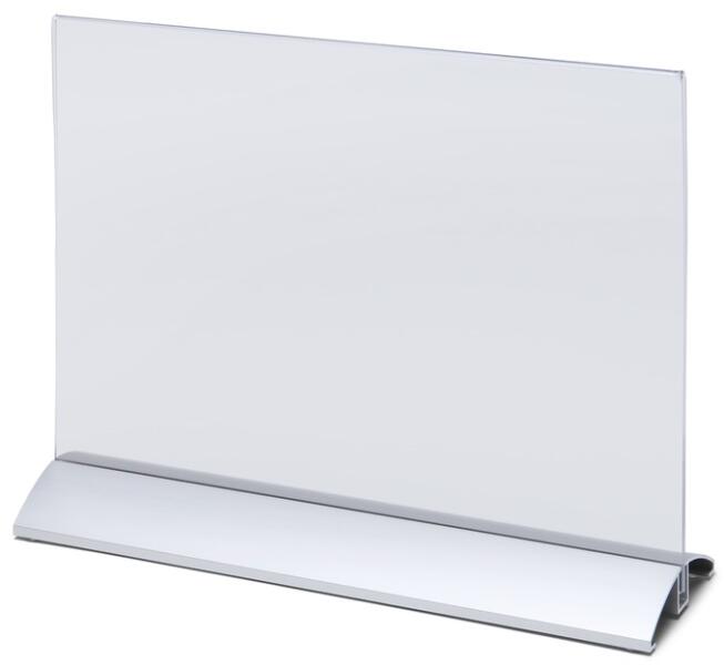 Jansen Display Menüállvány alumínium talpon, A4-es fekvő formátum, átlátszó