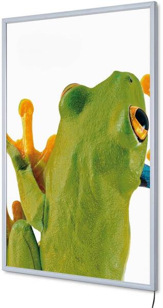 A 70 x 100 cm-es méretű, ultravékony, mindössze 19 mm-es profilú, könnyű LED csappantyú kiváló megoldás a nyomtatott anyagok bemutatására, nem csak irodai környezetben. Ez a modern szerszám kiváló minőségű eloxált alumíniumból készült, amelyet hátoldalán műanyag fal és UV-szűrős fólia egészít ki, megakadályozva a fakulást és a tartalom sérülését. Ezenkívül az összes tartalmat LED technológia világítja meg, amely töltést és még vonzóbbá teszi üzenetét. A deszka egyszerűsége a keret egy vagy több oldalának kényelmes összecsukásában és a nyomdai anyagok későbbi beszerelésében áll, amit abszolút mindenki meg tud kezelni. Nagyon kis súlyának köszönhetően nagyon praktikus, és különösen alkalmas falra akasztani, ahol éles sarkai miatt jól mutat majd. A könnyű LED-es járólap fő előnyei 70 x 100 cm Az összecsukható keret kiváló választás nyomtatott anyagok bemutatásához Kényelmes tartalomcsere a csuklós pántnak köszönhetően a keret oldalai A keret eloxált alumíniumból készült. LED technológia által biztosított háttérvilágítás A keret tartalma UV-szűrővel védett Nagyon egyszerű és kényelmes telepítésUltra vékony konstrukció A 19 mm-es profilú keret tömör eloxált alumíniumból készült, nagyon strapabíró és megbízhatóan védi a bemutatott tartalmat. Egyszerű tartalomcsere A nyomtatott anyagok cseréje soha nem volt ilyen egyszerű, mert csak a keret egyik oldalát kell behajtania, és kényelmesen beillesztheti a tartalmat.