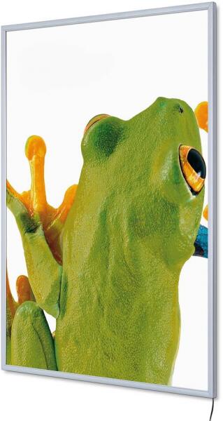 A0 méretű, ultravékony, mindössze 19 mm-es profilú, könnyű LED csappantyú kiváló megoldás a nyomtatott anyagok bemutatására, nem csak irodai környezetben. Ez a modern szerszám kiváló minőségű eloxált alumíniumból készült, amelyet hátoldalán műanyag fal és UV-szűrős fólia egészít ki, megakadályozva a fakulást és a tartalom sérülését. Ezenkívül az összes tartalmat LED technológia világítja meg, amely töltést és még vonzóbbá teszi üzenetét. A deszka egyszerűsége a keret egy vagy több oldalának kényelmes összecsukásában és a nyomdai anyagok későbbi beszerelésében áll, amit abszolút mindenki meg tud kezelni. Nagyon kis súlyának köszönhetően nagyon praktikus, és különösen alkalmas falra akasztani, ahol éles sarkai miatt jól mutat majd. A könnyű LED-es járólap fő előnyei A0 Az összecsukható keret kiváló választás nyomtatott anyagok bemutatásához Kényelmes tartalomcsere a keret csuklós oldalainak köszönhetően A keret eloxált alumíniumból készül. A LED technológia által biztosított háttérvilágítás A keret tartalma UV-szűrővel védett Nagyon egyszerű és kényelmes telepítés li>Nagyon vékony felépítés A 19 mm-es profilú keret tömör eloxált alumíniumból készült, amely nagyon tartós és megbízhatóan védi a megjelenített tartalmat. Könnyű tartalomcsere A nyomtatványok cseréje még soha nem volt ilyen egyszerű, mert csak a keret egyik oldalát kell lehajtania, és kényelmesen beillesztenie a tartalmat.