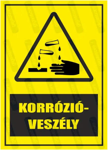 Korrózióveszély piktogram+felirat tábla matrica : Tábla-matrica mérete - A5 / 148 x 210 mm, Tábla-matrica típusa - matrica