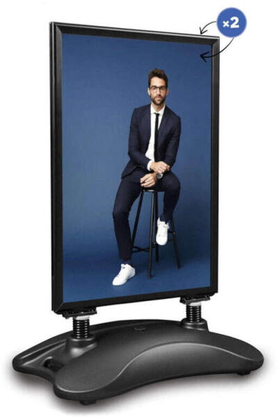 Kültéri információs tábla: B2-es méretű, duplaoldalas, időjárásálló reklámtábla ☀️ Ez a kültéri információs tábla ideális megoldás a hatékony reklámozáshoz. A B2-es méretével jól látható, duplaoldalas kialakításával pedig maximális hatást érhet el. Az időjárásálló anyagoknak köszönhetően bármilyen időjárási körülmény között használható. Főbb jellemzők:B2-es méret (500x707 mm): Ideális méret a figyelemfelkeltéshez. Duplaoldalas: Két oldalra is elhelyezhető a reklám. Erős alumínium keret: Tartós és időtálló konstrukció. UV-álló anyag: A színek sokáig élénkek maradnak. Vízzel tölthető talp: Stabil állás, még szeles időben is. Rugós rögzítés: A tábla alkalmazkodik a szélhez. Kerekek az alján: Könnyű mozgathatóság. Snap keret: Gyors és egyszerű plakátcsere. Vastag plakátvédő: Védi a nyomatot a napfénytől és a sérülésektől. Előnyök:Könnyű plakátcsere: A snap keretnek köszönhetően pillanatok alatt kicserélheti a plakátot. Időjárásálló: Bármilyen időben használható. Stabil: A vízzel tölthető talp biztosítja a stabilitást. Mozgatható: A kerekeknek köszönhetően könnyen áthelyezhető. Tökéletes választás: Ez a kültéri információs tábla ideális üzletek, éttermek, rendezvények és egyéb kültéri helyszínek számára. Hívja fel a figyelmet a termékeire vagy szolgáltatásaira egy látványos és hatékony módon!