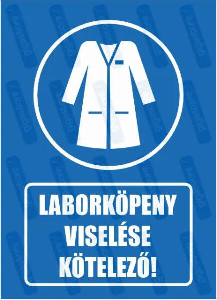 Laborköpeny viselése kötelező " felirat, fehér laborköpeny piktogram, öntapadós vinyl matrica, vagy PVC tábla. -UV és időjárás álló-Több méretben választhatóA rendelkező kék alapon fehér jelzések meghatározott magatartást írnak elő, célja az élet és vagyon védelme.