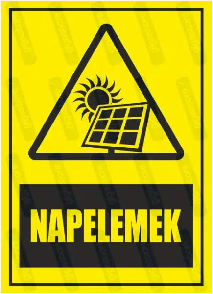 Napelemek piktogram+felirat tábla matrica : Tábla-matrica mérete - A4 / 210 x 297 mm, Tábla-matrica típusa - matrica