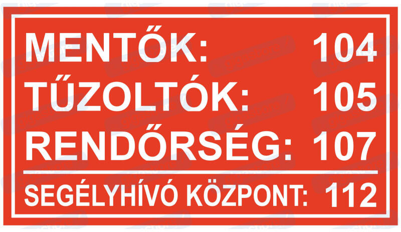 Segélyhívó piros tábla matrica : Tábla-matrica mérete - A3 / 297 x 420 mm, Tábla-matrica típusa - matrica