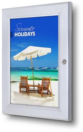 A plakáttartók alkalmasak szórólapok, fényképek, plakátok, speciális ajánlatok stb. bemutatására. A zárható keretek tartós polikarbonátból készülnek. A plakátokat mágneses behajtható profil segítségével lehet a keretbe helyezni.