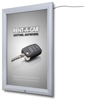A T típusú kültéri keretek LED megvilágítással alkalmasak szórólapok, fényképek, plakátok, speciális ajánlatok stb. bemutatására. A megvilágított plakátkereteket oldalsó szerelésű biztonsági zárak biztosítják. Ellenállnak a zord időjárásnak és a gondatlan kezelésnek. A plakáttartó megvilágítási színe +- 5000 K.