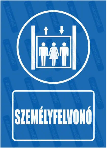 Személyfelvonó piktogram+felirat tábla matrica : Tábla-matrica mérete - A5 / 148 x 210 mm, Tábla-matrica típusa - 3mm pvc tábla