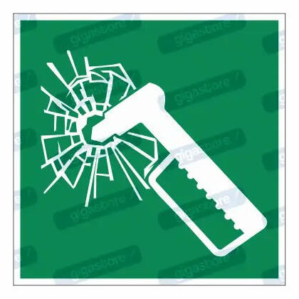 Vészhelyzeti kalapács piktogram matrica E025 : Tábla-matrica mérete - 50 x 50 mm (4db), Tábla-matrica típusa - matrica