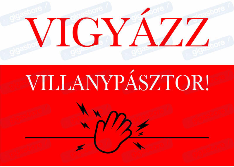 Vigyázz villanypásztor tábla matrica : Tábla-matrica mérete - A5 / 148 x 210 mm, Tábla-matrica típusa - 3mm pvc tábla