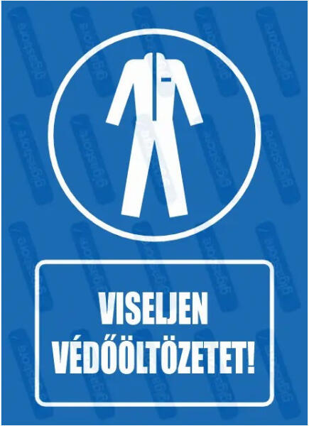 Viseljen védőöltözetet piktogram+felirat tábla matrica : Tábla-matrica mérete - A5 / 148 x 210 mm, Tábla-matrica típusa - matrica