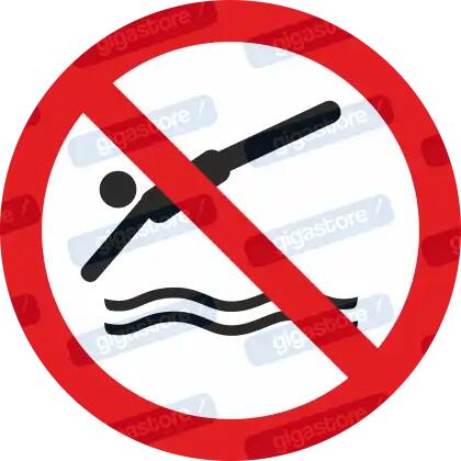 P052 " Vízbe ugrást tiltó piktogram, öntapadós vinyl matrica. ISO 7010-es szabvány szerint, egyszerű, gyors és nyelvfüggetlen módon közöl információt, hogy bárki könnyen megértse. -UV és időjárás álló-Több méretben választhatóA tiltó fehér alapon áthúzott piros kör és fekete piktogram jelzések a biztonságot és az egészséget veszélyeztető magatartást tiltanak, valamint figyelmeztetnek a veszélyforrásra.