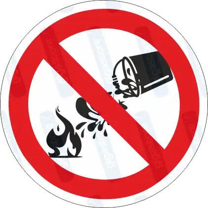 Tűz oltását vizet használva tiltó piktogram, öntapadós vinyl matrica. -UV és időjárás álló-Több méretben választhatóA tiltó fehér alapon áthúzott piros kör és fekete piktogram jelzések a biztonságot és az egészséget veszélyeztető magatartást tiltanak, valamint figyelmeztetnek a veszélyforrásra.